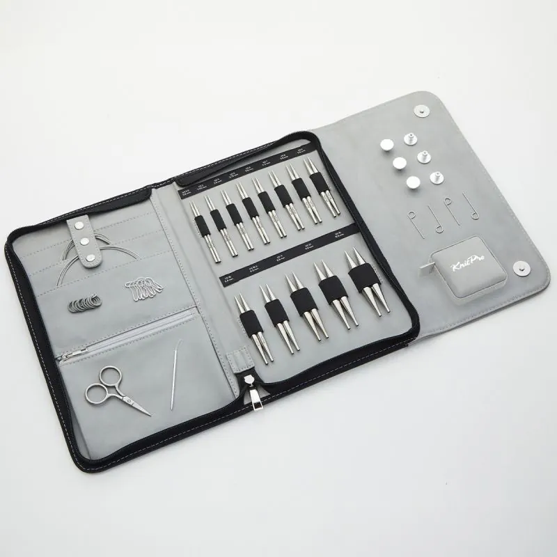 Choose the Grande Set with 13 pairs of needle tips and 6 stainless steel cables, or the Midi Set with 7 pairs of needle tips, 4 cables, and accessories.